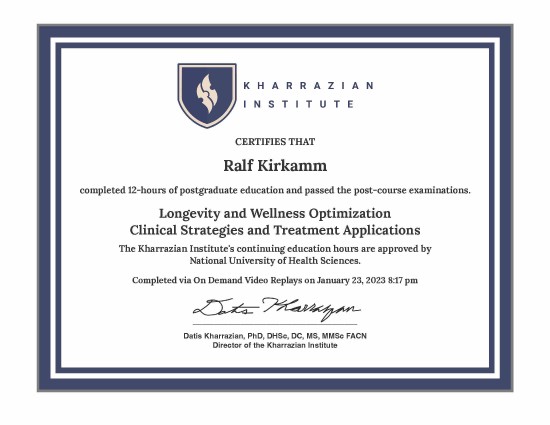 2. Angewandte Funktionelle Medizin (Applied Functional Medicine) Durch die Zertifizierung bei Dr. Datis Kharrazian verfolge ich einen systembiologischen Ansatz zur Identifikation physiologischer Ursachenkomplexe. Meine Schwerpunkte liegen in der tiefgreifenden laborchemischen Evaluation von: